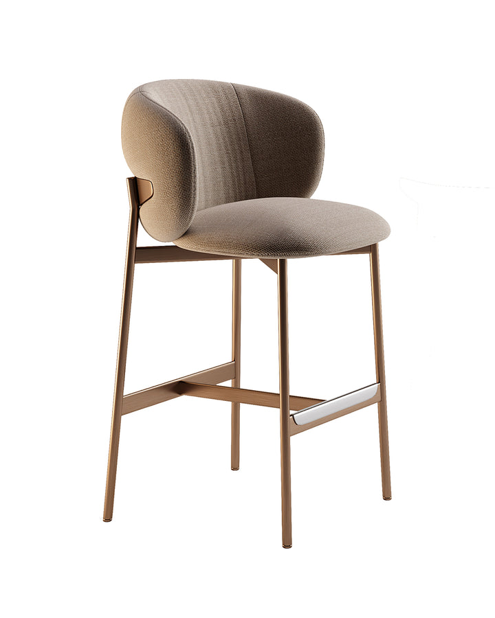 The ELVINA Bar Chair by INSIDE HOME embodies elevated comfort and timeless elegance. Its softly curved backrest and fully upholstered seat rest atop a slim bronze frame with a polished footrest accent. Designed with impeccable Italian balance, ELVINA brings warmth, sophistication, and ergonomic beauty to any luxury kitchen or bar setting.