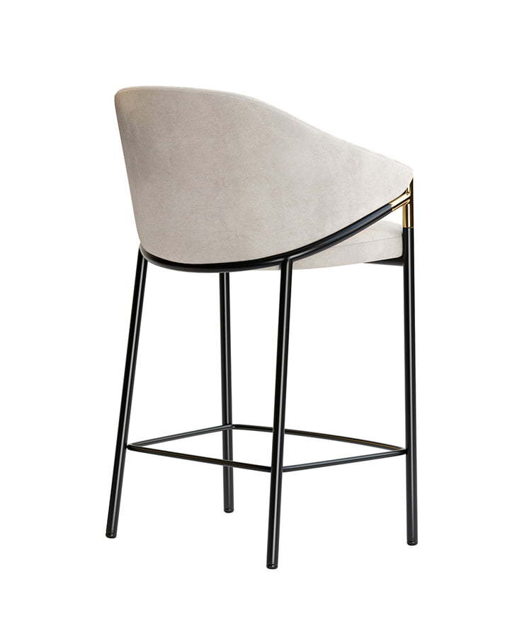 The SAVORA Bar Chair embodies refined industrial elegance. Its soft velvet seat rests gracefully on a black metallic frame accentuated by golden details, creating a sophisticated contrast between strength and delicacy. Designed for modern interiors that value balance and craftsmanship, SAVORA introduces timeless luxury to any bar or kitchen space.