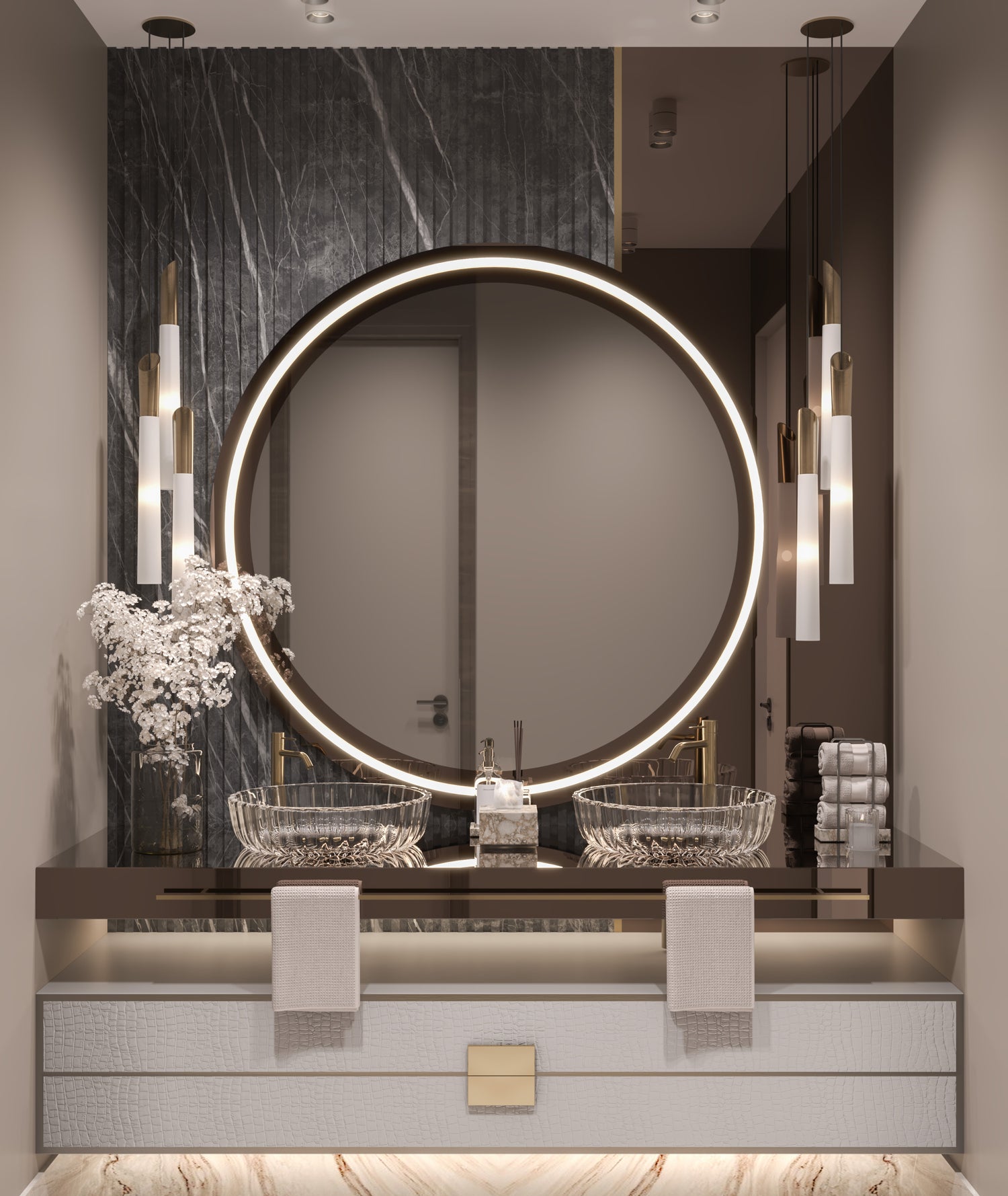 This villa was envisioned with a sophisticated design concept that reflects the prestige and modern luxury of Jumeirah living. Every space was curated with precision—balancing contemporary aesthetics, refined textures, and warm, inviting tones to create a seamless and elevated atmosphere.