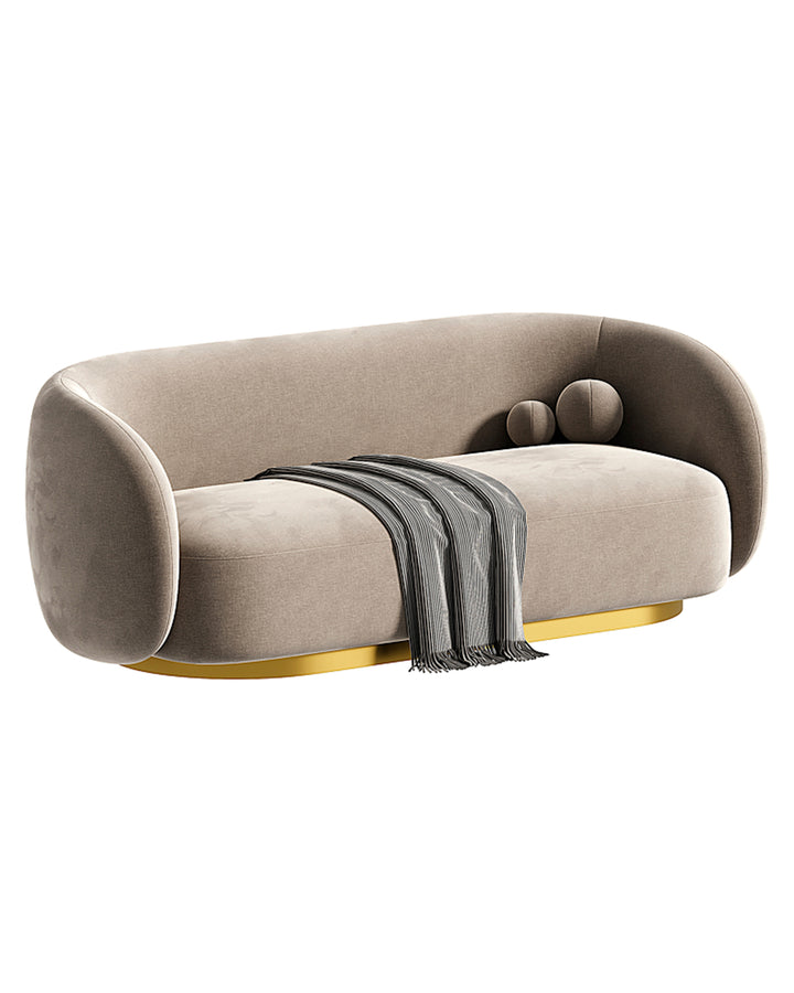 The Volare Sofa embodies timeless elegance and modern comfort, designed with smooth curved lines and an inviting silhouette. Upholstered in premium textured fabric with a soft-touch finish, it brings sophistication and warmth to any living room. Resting on a refined golden base, the sofa combines functionality with artistry, making it the centerpiece of luxurious interiors.